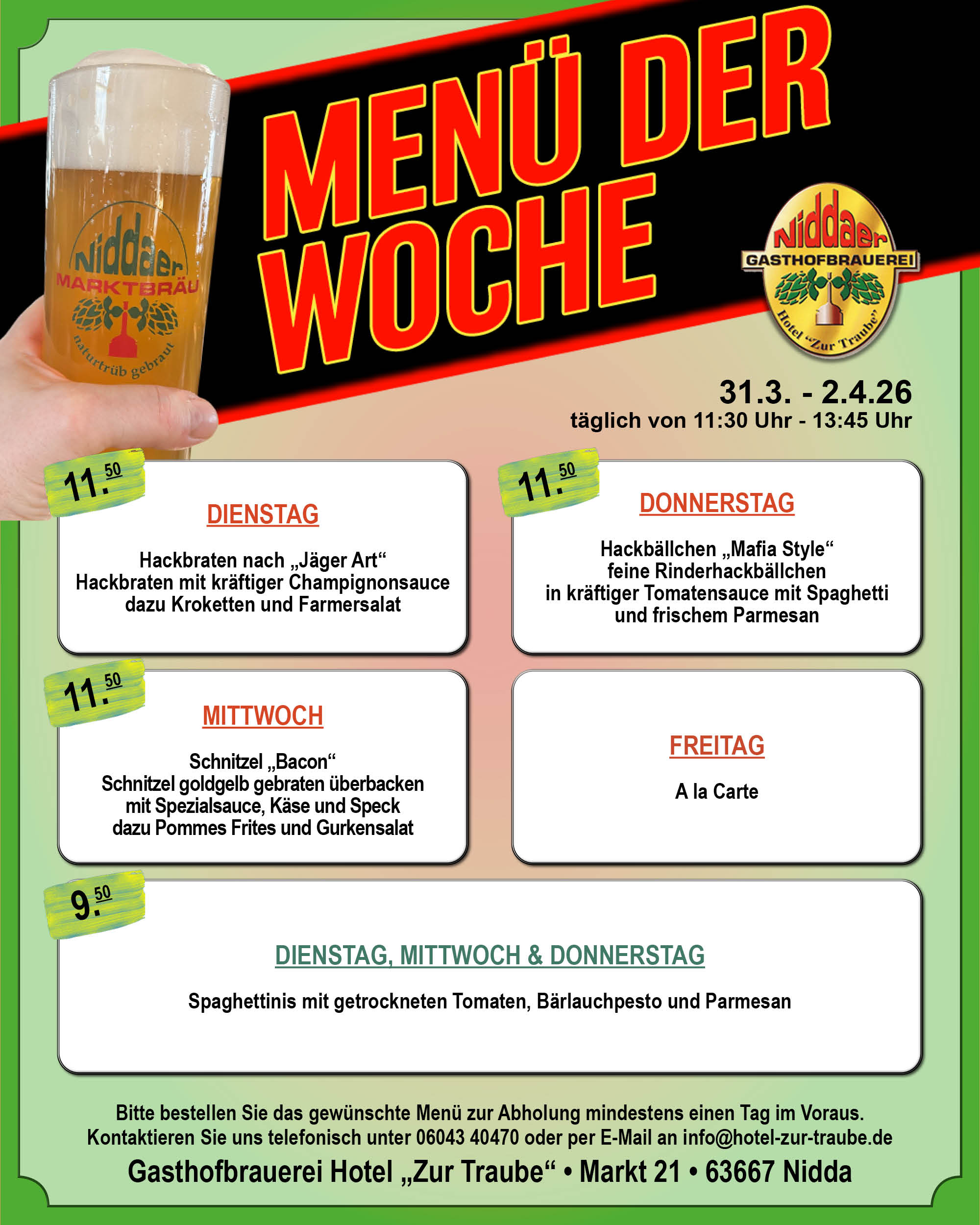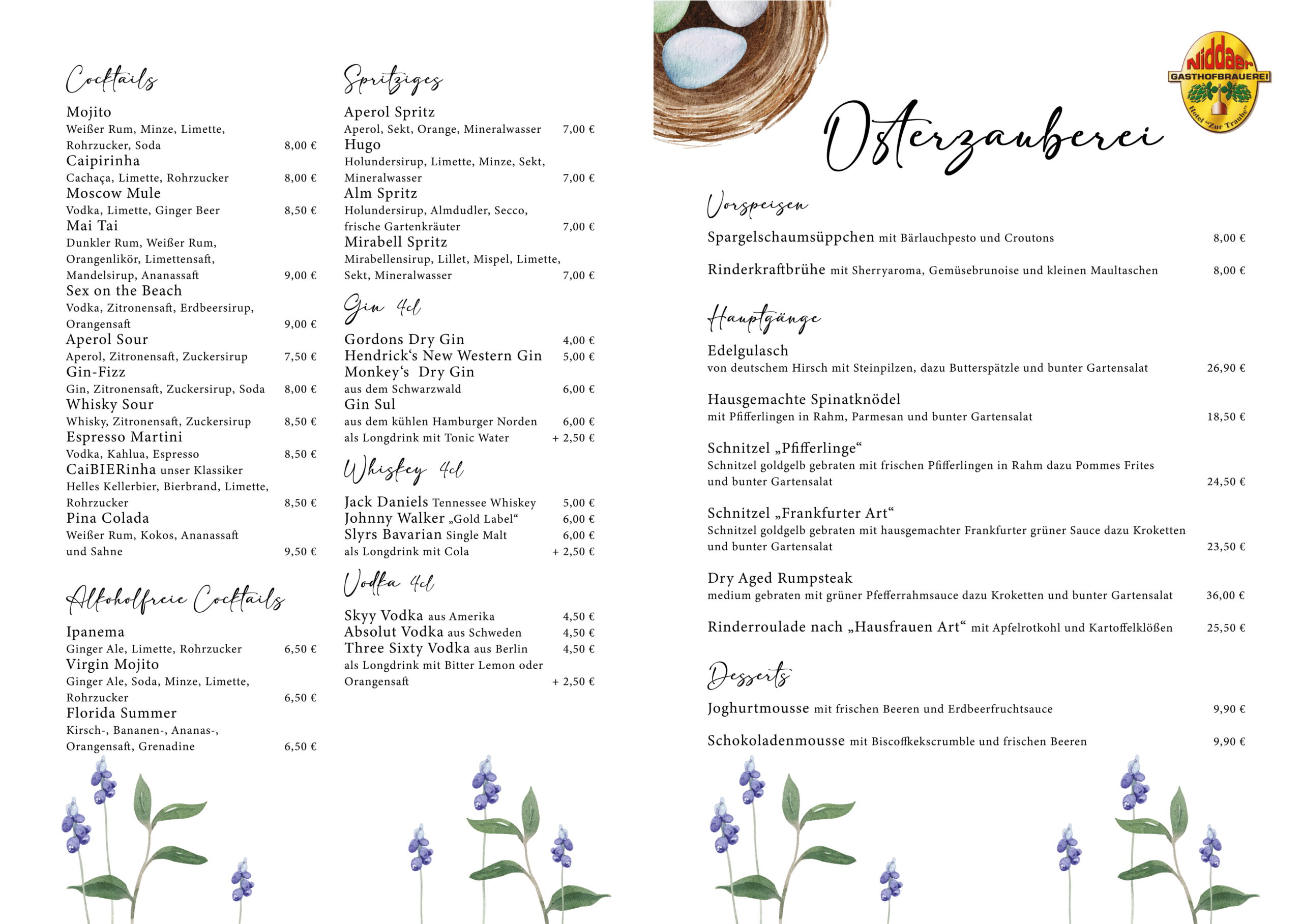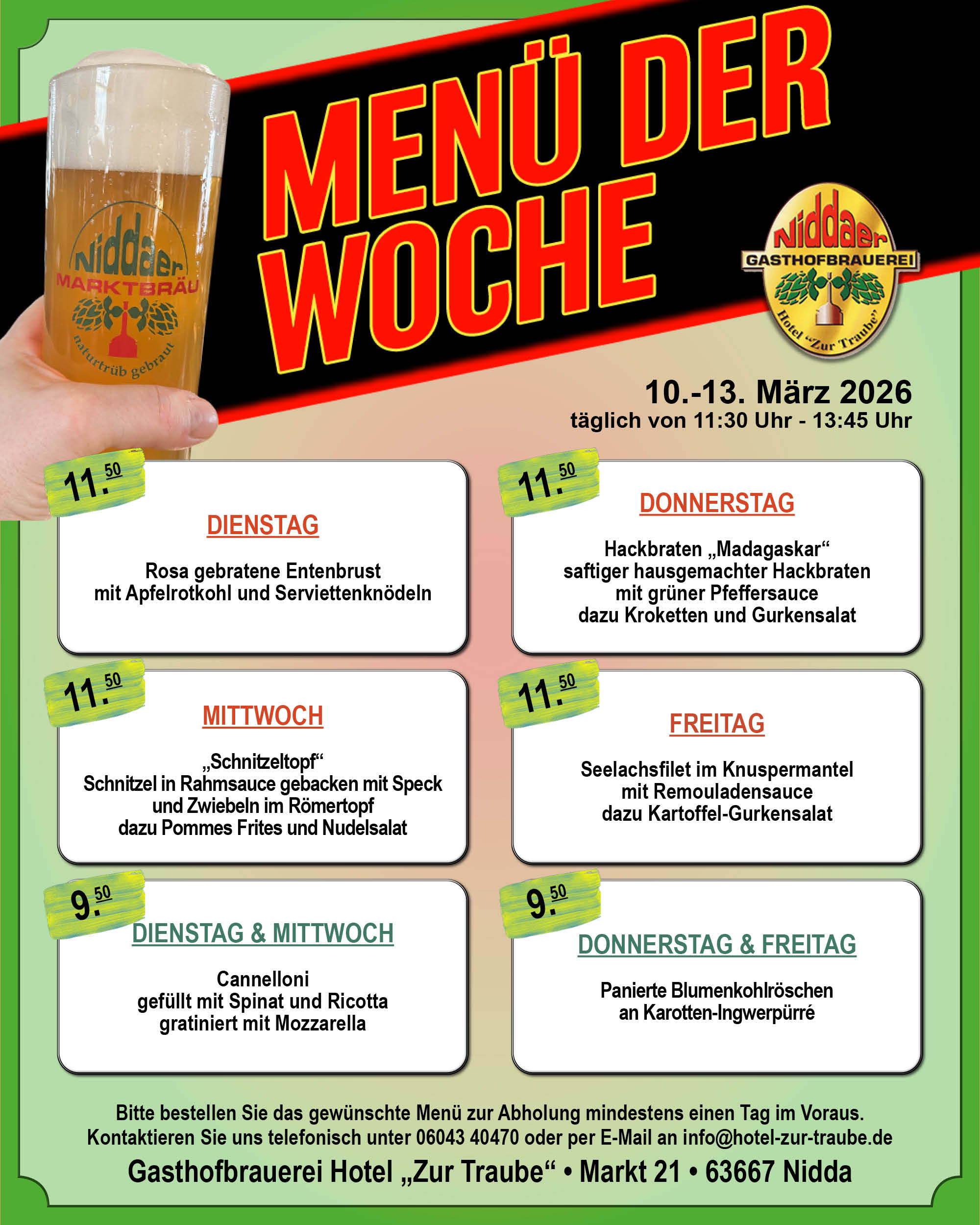 Das Hotel zu Traube oder „Traube“ wie sie im Volksmund genannt wird, wurde bereits im Jahre 1840 eröffnet und ist eine gastronomische Institution in Oberhessen. Nach dem verheerenden Brand im Februar 1996 wurden Restaurant und Hotel um eine eigene Brauerei in den Kellerräumen ergänzt. Seit nunmehr 22 Jahren besteht dieses neue gastronomische Konzept in unserem Traditionsgasthaus am historischen Niddaer Marktplatz. Wir knüpfen damit an eine Jahrhunderte alte Brautradition in Nidda an und sind gleichzeitig die einzige Brauerei in der Region.